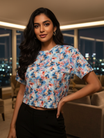 AQUA BLOOM Crop Tee | Fresh Floral Aesthetic with Effortless Comfort